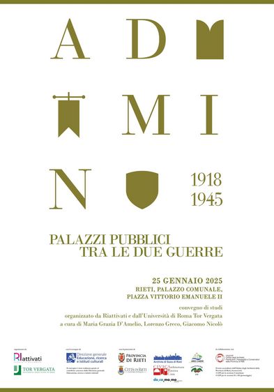 Il 25 gennaio 2024, presso la sala consigliare del Comune di Rieti, si è svolto il convegno ADMIN Palazzi pubblici tra le due guerre, 1918-1945, a cura di Maria Grazia D'Amelio, Lorenzo Grieco e Giacomo Nicolò. La giornata di studi è stata organizzata dall'Associazione culturale giovanile Riattivati e dal Dipartimento di ingegneria dell'impresa dell'Università di Roma Tor Vergata, con il sostegno della Direzione generale educazione, ricerca e istituti culturali del MiC, il patrocinio di Provincia di Rieti, Comune di Rieti, Archivio di Stato di Rieti, ANCI Lazio, CIVICARC, UPI, Docomomo Italia, e la collaborazione dell'Ordine degli architetti di Rieti.