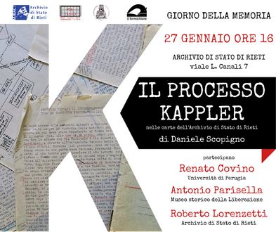 Il materiale è composto dai documenti, dagli appunti e dalle pubblicazioni che è ora possibile ritrovare nel libro Il processo Kappler nelle carte dell'Archivio di Stato di Rieti, realizzato da Daniele Scopigno, funzionario del MiBACT e giornalista, per i tipi de Il Formichiere di Foligno, che è stato presentato in occasione della Giornata della memoria (27 gennaio, ore 16), giorno dedicato alla commemorazione delle vittime dell’Olocausto.
