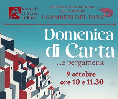 In occasione della Domenica di carta, l’evento promosso ogni anno dal ministero della Cultura per valorizzare l’immenso e prezioso patrimonio archivistico custodito negli archivi dello Stato, il 9 ottobre 2022 l'Archivio di Stato di Rieti ha proposto l’iniziativa dal titolo Domenica di carta…e pergamena, con due incontri alle 10 e alle 11.30, per apprezzare e approfondire la documentazione membranacea in consegna all'Istituto, conoscerne i contenuti e le tecniche di restauro.