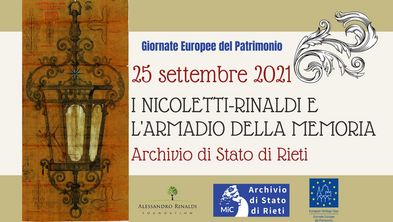 In occasione delle Giornate europee del patrimonio - GEP 2021, il 25 settembre è stata inaugurata alle 16, nella sede dell’Archivio di Stato di Rieti in viale Canali 7, la mostra storico-documentaria e iconografica I Nicoletti-Rinaldi e l’armadio della memoria. Artigianato, lavoro e inclusione sociale in una storia d’impresa, a cura di Alfredo Pasquetti e Daniele Scopigno, in collaborazione con la Alessandro Rinaldi Foundation. All’inaugurazione hanno partecipato Antonella Mulè della Direzione generale Archivi del Ministero della cultura e Federico Rinaldi, presidente dell’AR Foundation.
