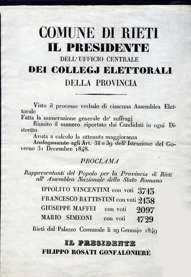 Con la Restaurazione, il Reatino e la Sabina, con altri territori delle province che avevano fatto parte dell'impero francese, furono posti sotto la reggenza provvisoria di monsignor Ludovico Gazzoli, patrizio di Terni e delegato apostolico di Spoleto, fino al 1816. Per questa fase ci si deve pertanto volgere all'archivio della Delegazione apostolica di Spoleto, consultabile presso la Sezione di Archivio di Stato di Spoleto dell'Archivio di Stato di Perugia, all'interno del quale sono disponibili le carte inerenti al territorio reatino e sabino per il biennio di reggenza di Gazzoli.